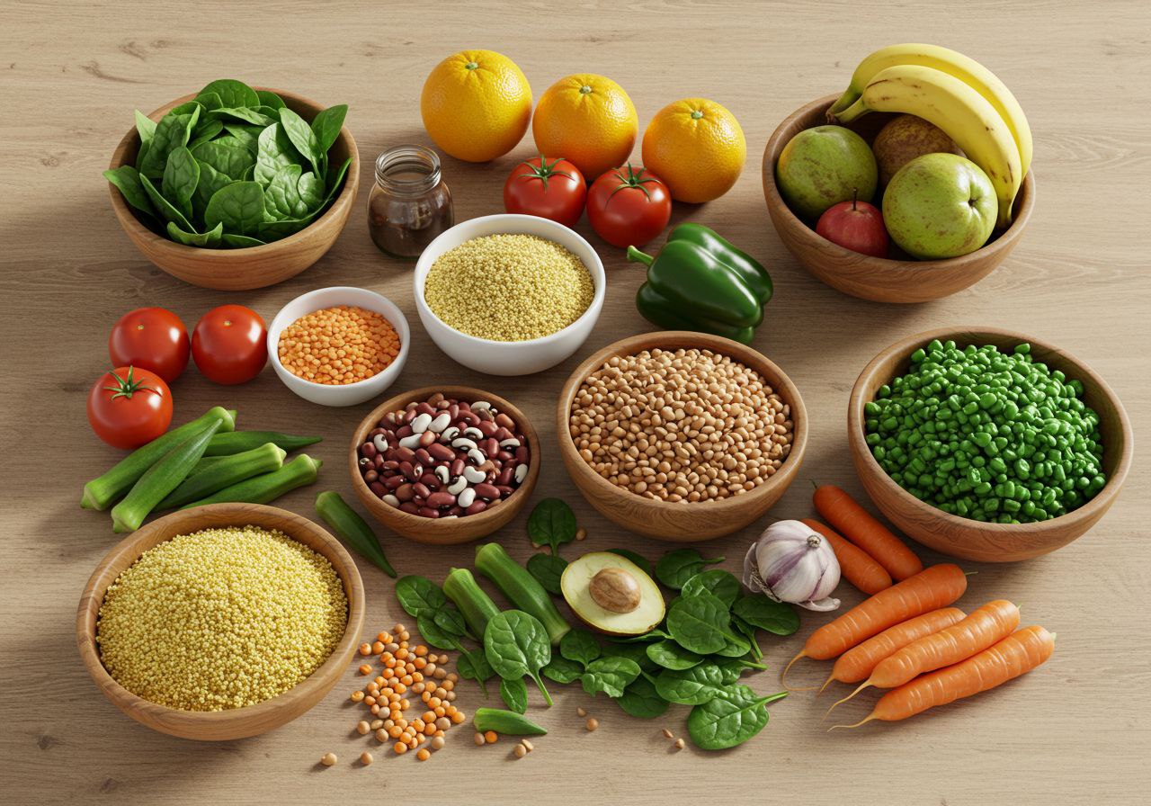 - Whole Grains and Legumes: Sorghum, millet, beans, and lentils provide fiber and magnesium, both protective against hypertension.